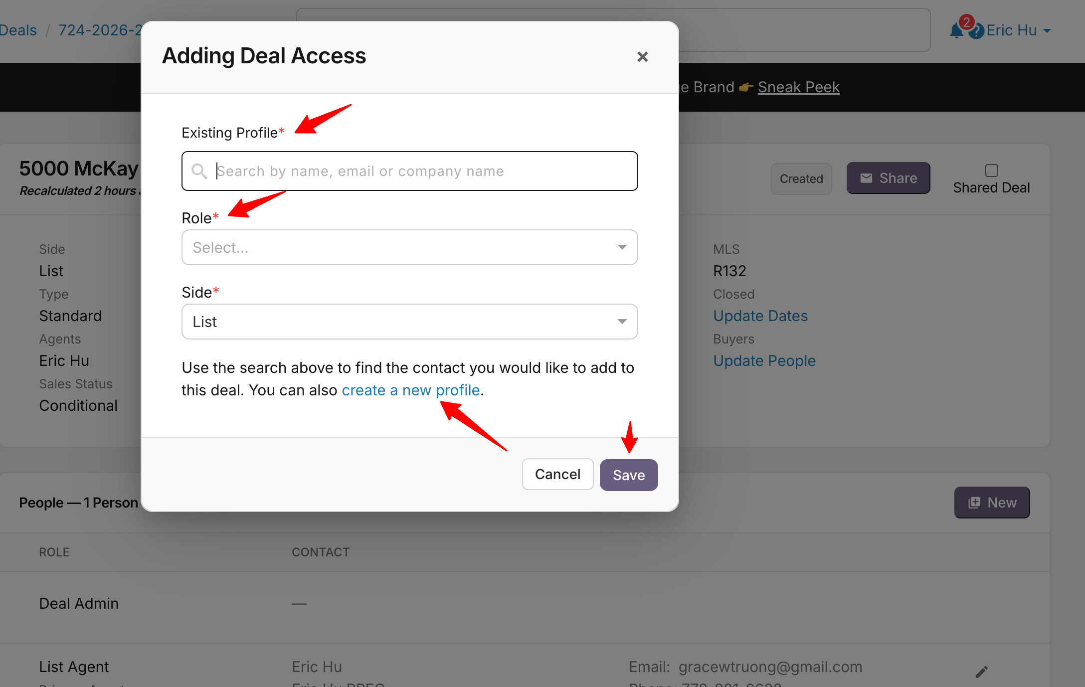 - Select a role. Role options are Sellers, Buyers, Agents, Lawyers, Title company, Escrow, Outside Brokerages, Settlement Company and Development company. If the person doesn't match any of those roles, select Other Profile.