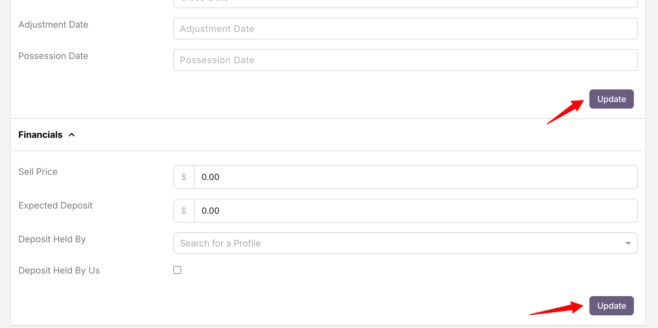 Deposit Held by Us - tick this if your broker holds deposit as stakeholder