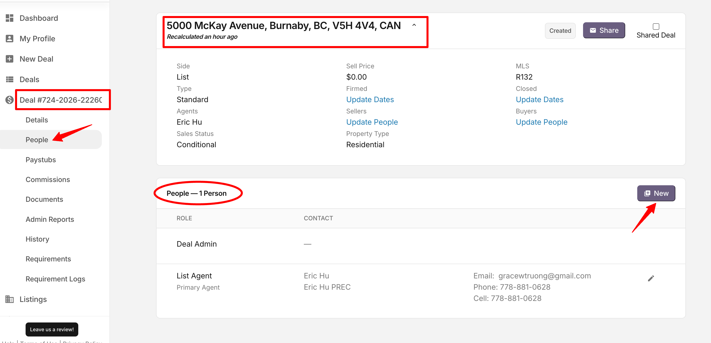 Deposit Held By - if deposit is held by other broker, go to People (deal > people > menu on the left) to add the other broker's information, then return to complete this field.