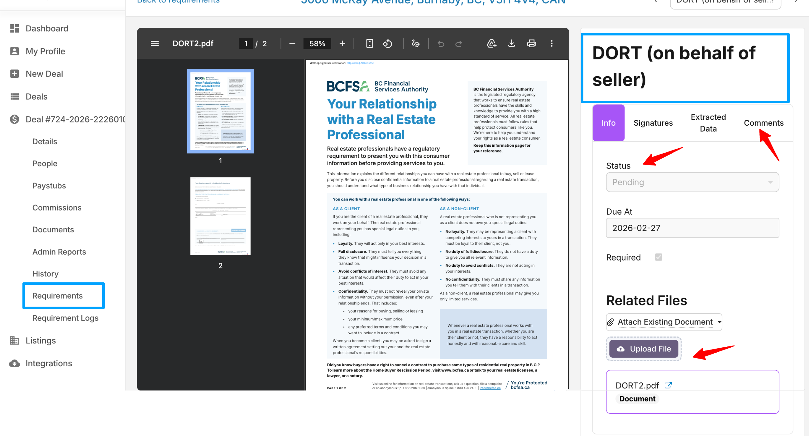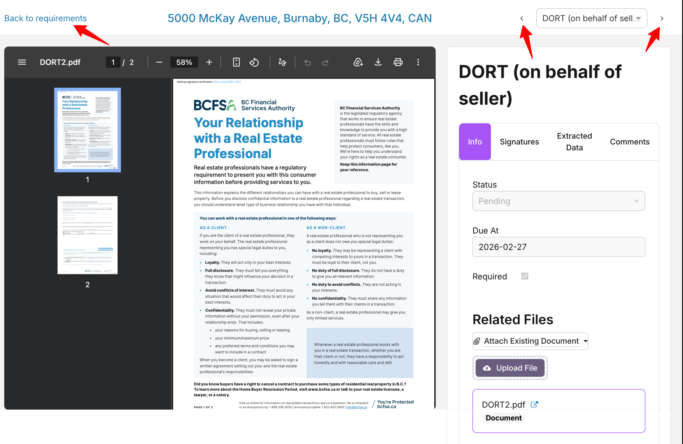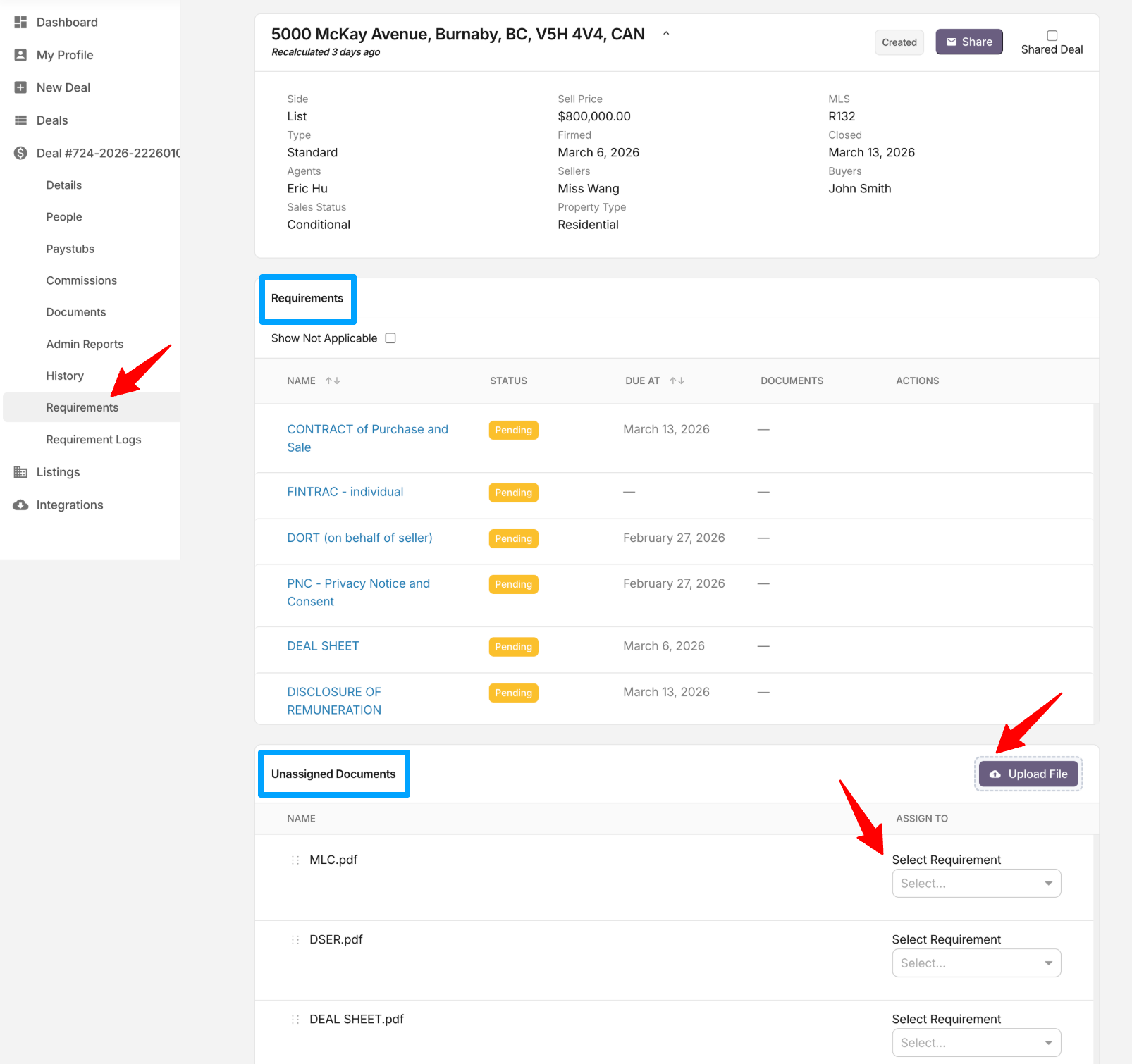 - you can also assign your documents to each requirement by clicking Selecting Requirement