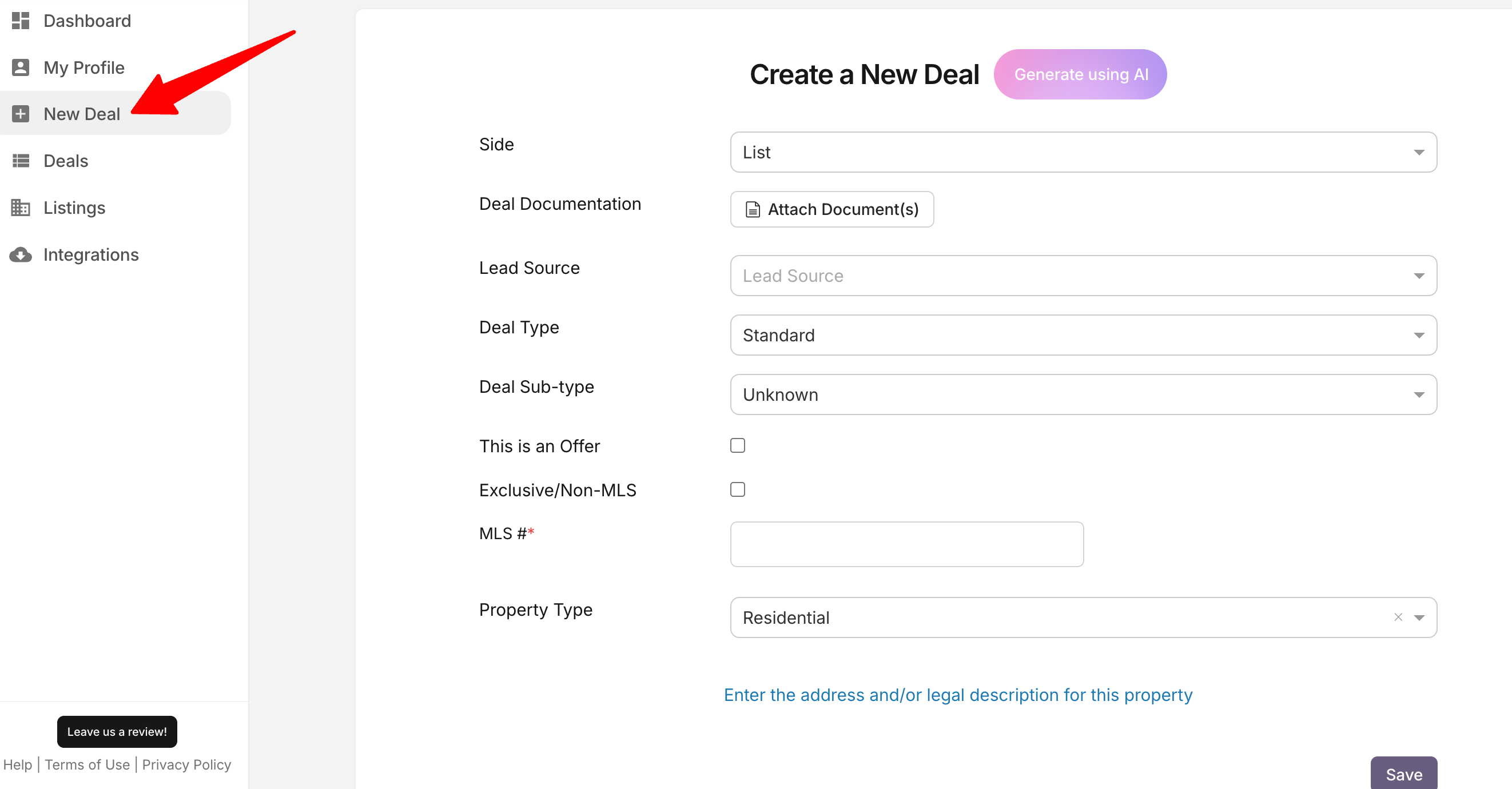 MLS# (MLS number is required to create a deal. However, if your deal is an offer, exclusive or the deal type isn't standard the MLS can be omitted)