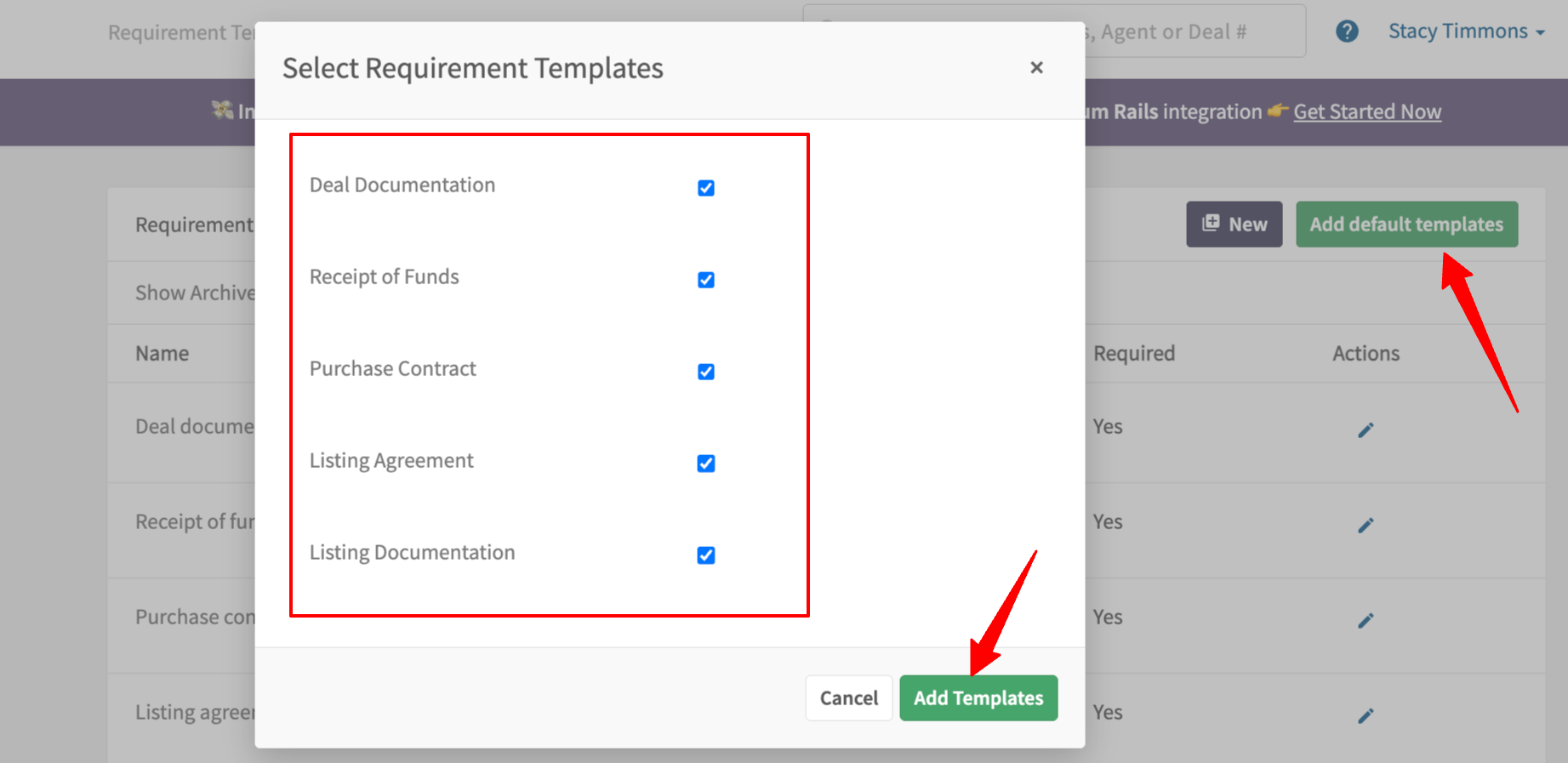 When you are in the new Requirements Template menu, you'll see new options, to add our default / suggested templates.